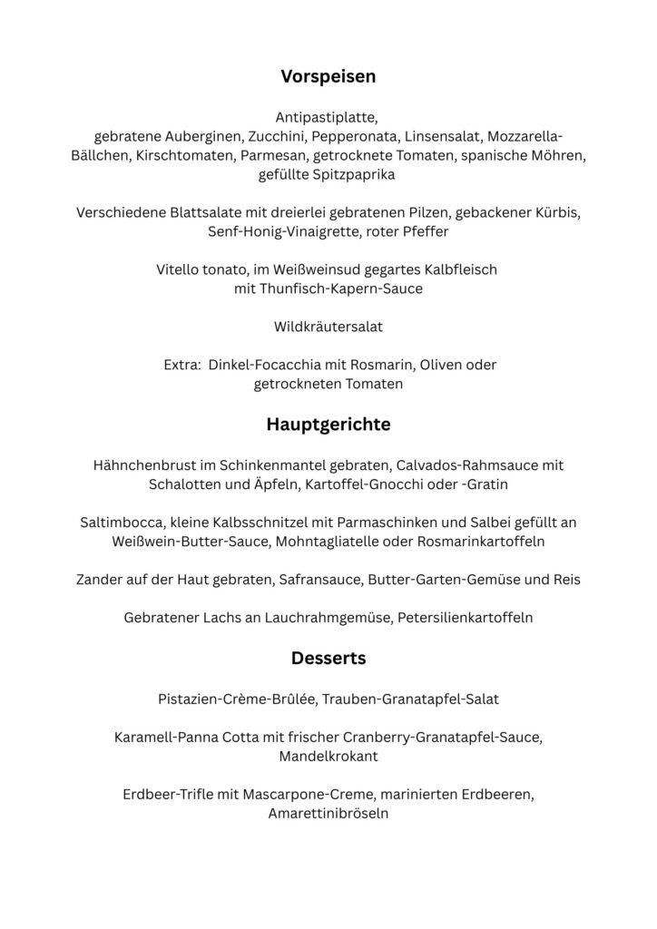 Gerne berate ich Dich persönlich und stelle Dein Wunsch-Menü, Buffet, Fingerfood oder Teilbuffet individuell zusammen – auf Wunsch inklusive passender Getränkeempfehlung und stimmungsvoller Tischdekoration.